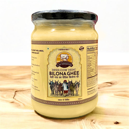 Gaumishthi Deshi A2 Cow Ghee 500ml | Traditionally Vaidik Bilona Curd Churned | 100% Pure & Healthy | Glass Jar