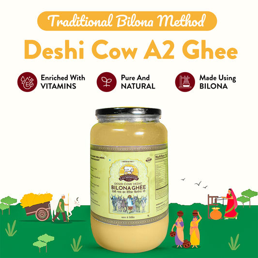 Gaumishthi Deshi A2 Cow Ghee 1 litre | Traditionally Vaidik Bilona Curd Churned | 100% Pure & Healthy | Glass Jar